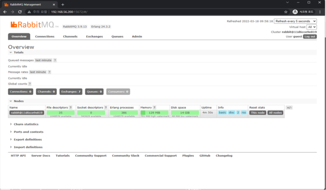2022년 3월 18일 기준으로 RabbitMQ의 최신 릴리스는 3.9.13 입니다. 다음으로 진행 할 내용은 Docker 이미지를 통해 RabbitMQ을 사용 합니다. 환경 구성이 끝난 후 VM이 깨질 수 있으니 스냅샷을 찍는걸 추천 드립니다.