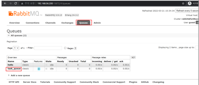 task_queue를 누르면 현재 들어온 queued messages를 확인 할 수있습니다.