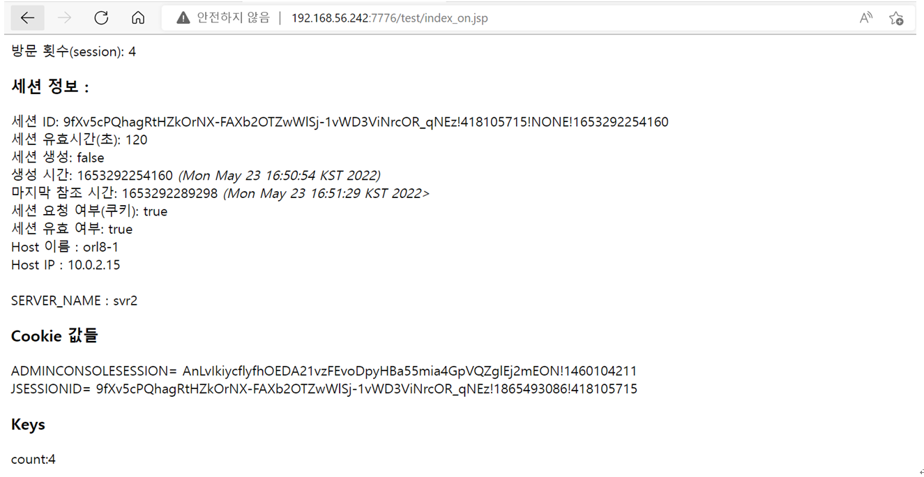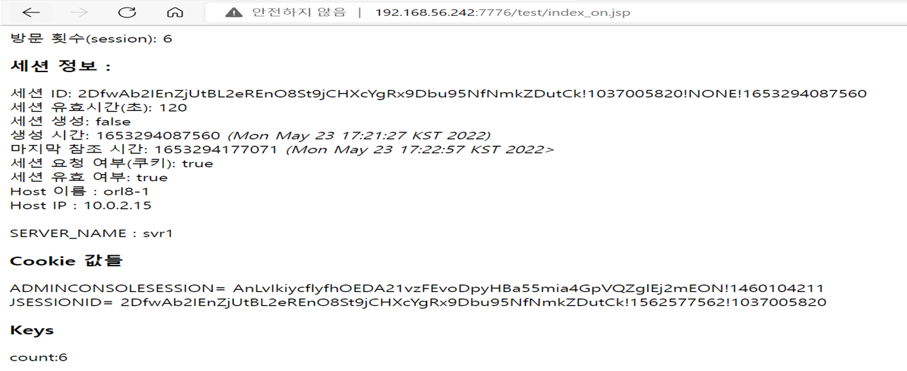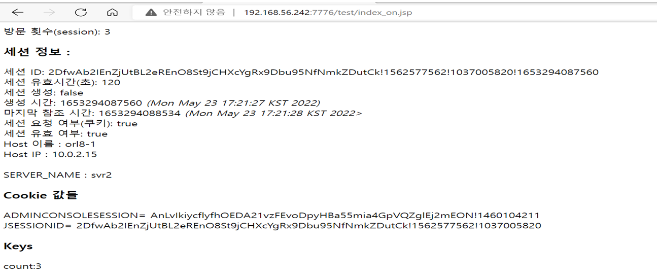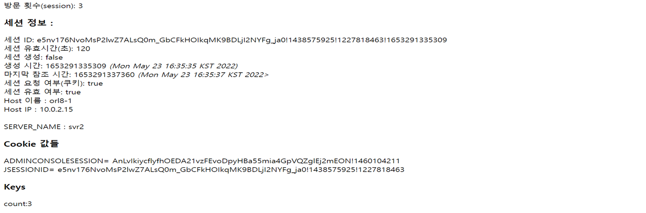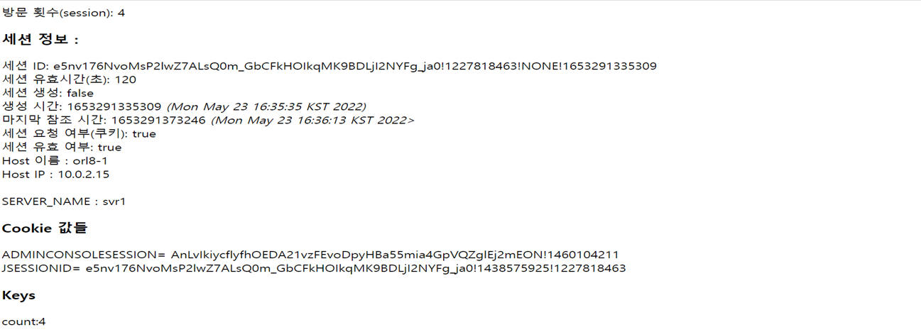 동일한 세션이 정상적으로 다른 WebLogic Server로 호출 되었다.