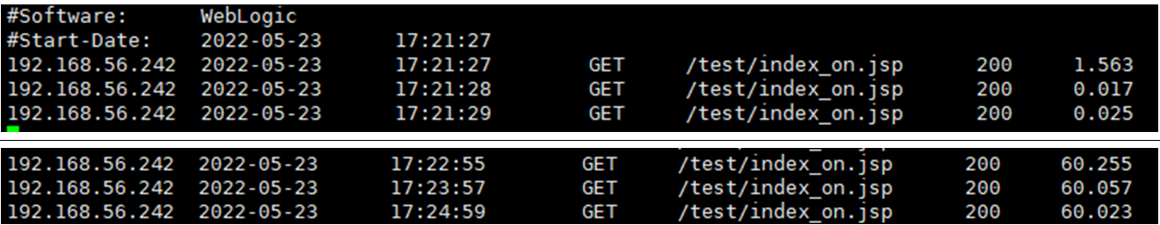 테스트 결과 같은 세션으로 정상적으로 넘어 갔다. 그렇다면 WLIOTimeoutSecs 값보다 초과 한 값을 넣고 테스트 하면 어떡해 될까?